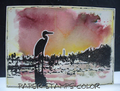 J'ai fait tout un tas d'ATC avec cette magnifique étampe de héron bleu.